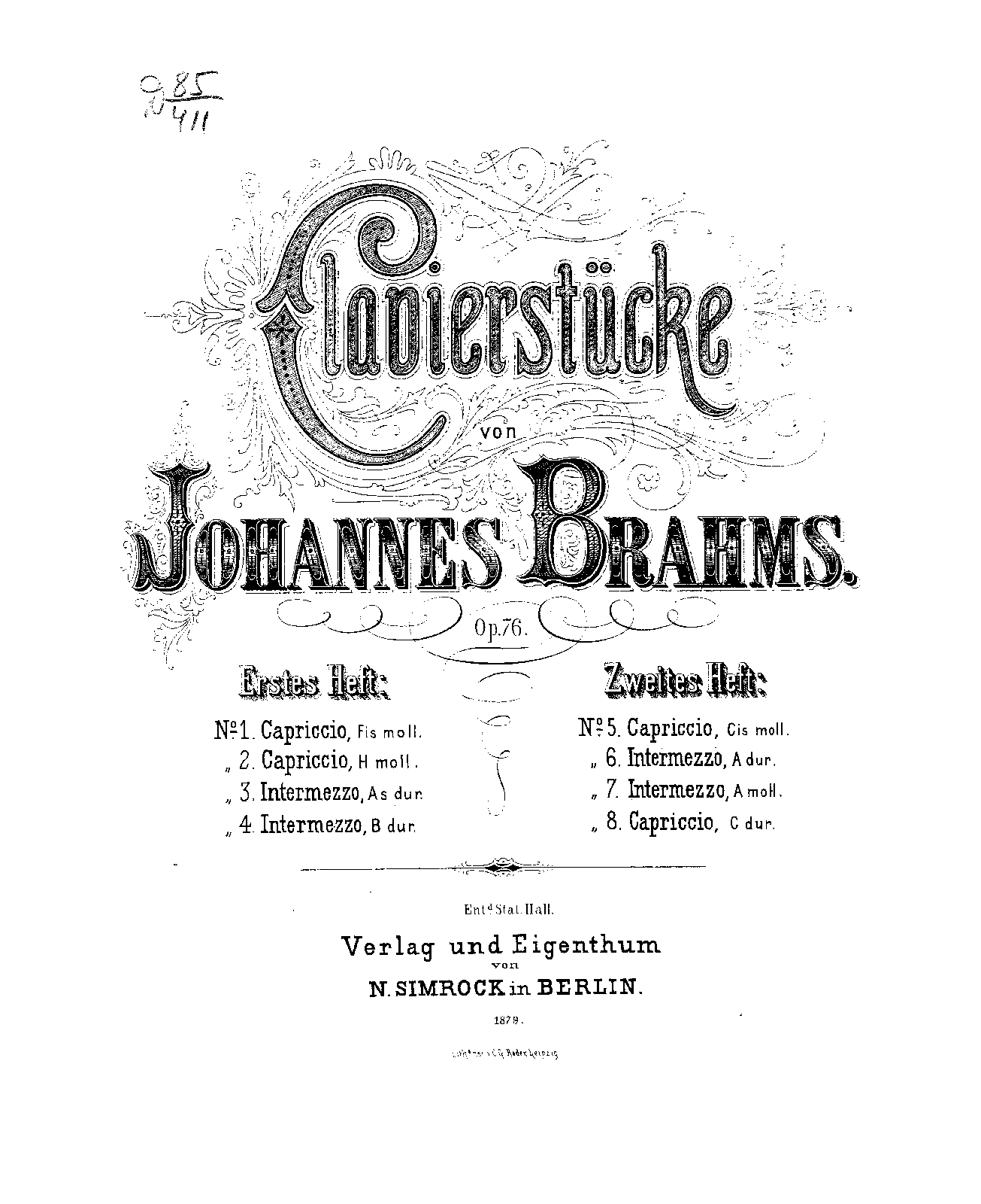 ⇒ 7 more: 2. Capriccio in B minor • 3. Intermezzo in A♭ major • 4. Intermezzo in B♭ major • 5. Capriccio in C♯ minor • 6. Intermezzo in A major • 7. Intermezzo in A minor • 8. Capriccio in C major