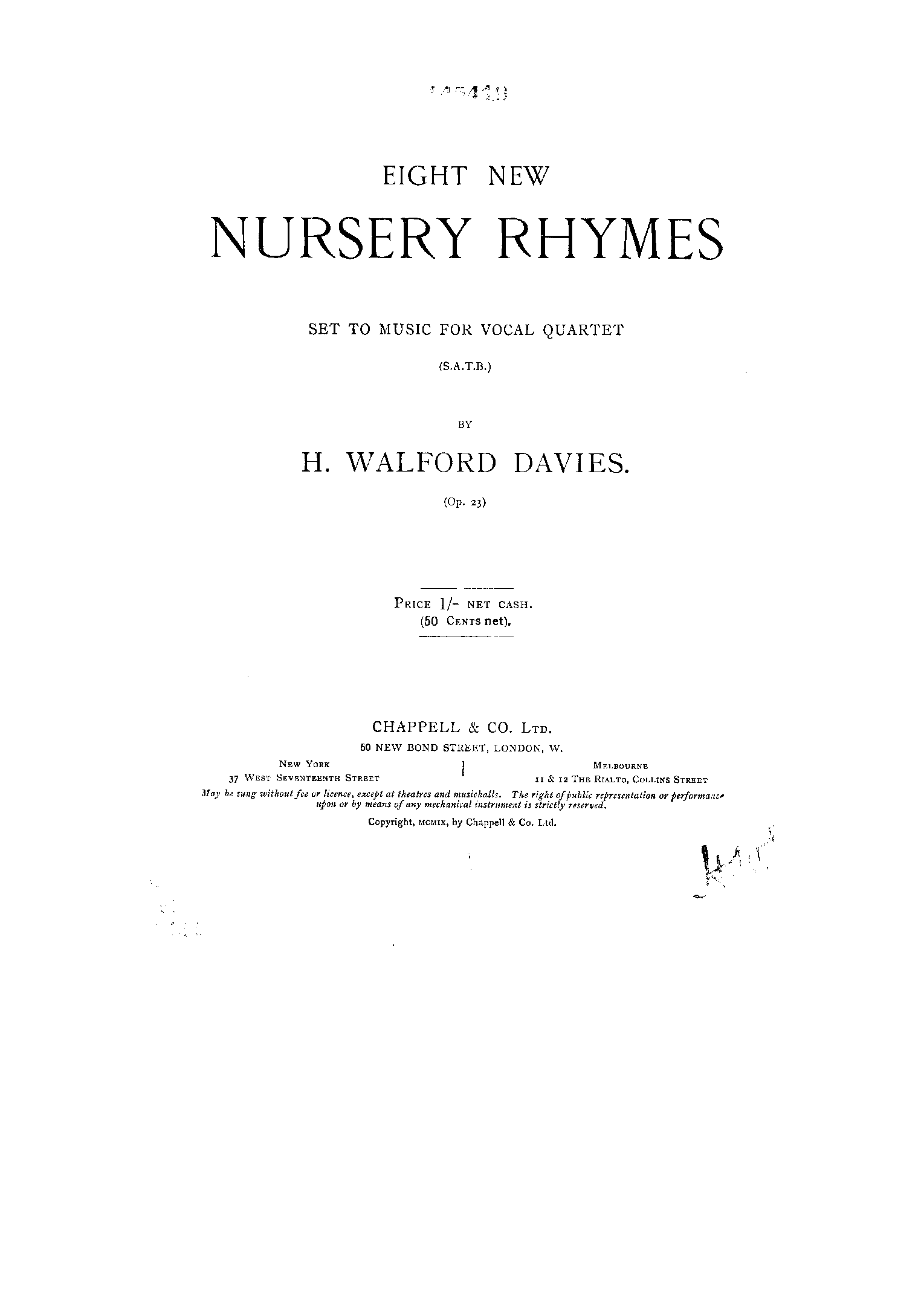 4 voices (or SATB Chorus), piano (but see below, Comments)