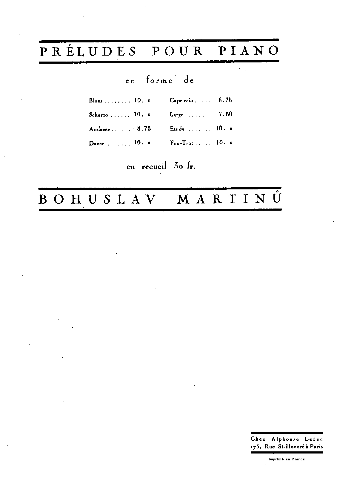 Préludes de Martinů; Acht Präludien; Osm preludií; Eight Preludes