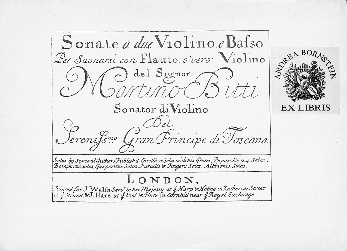 Sonate a due violino, e basso per suonarsi con flauto, o'vero violino [1711 edition]/ Solo's for a flute, with a th[o]rough bass for the harpsicord or bass violin [1712 edition]