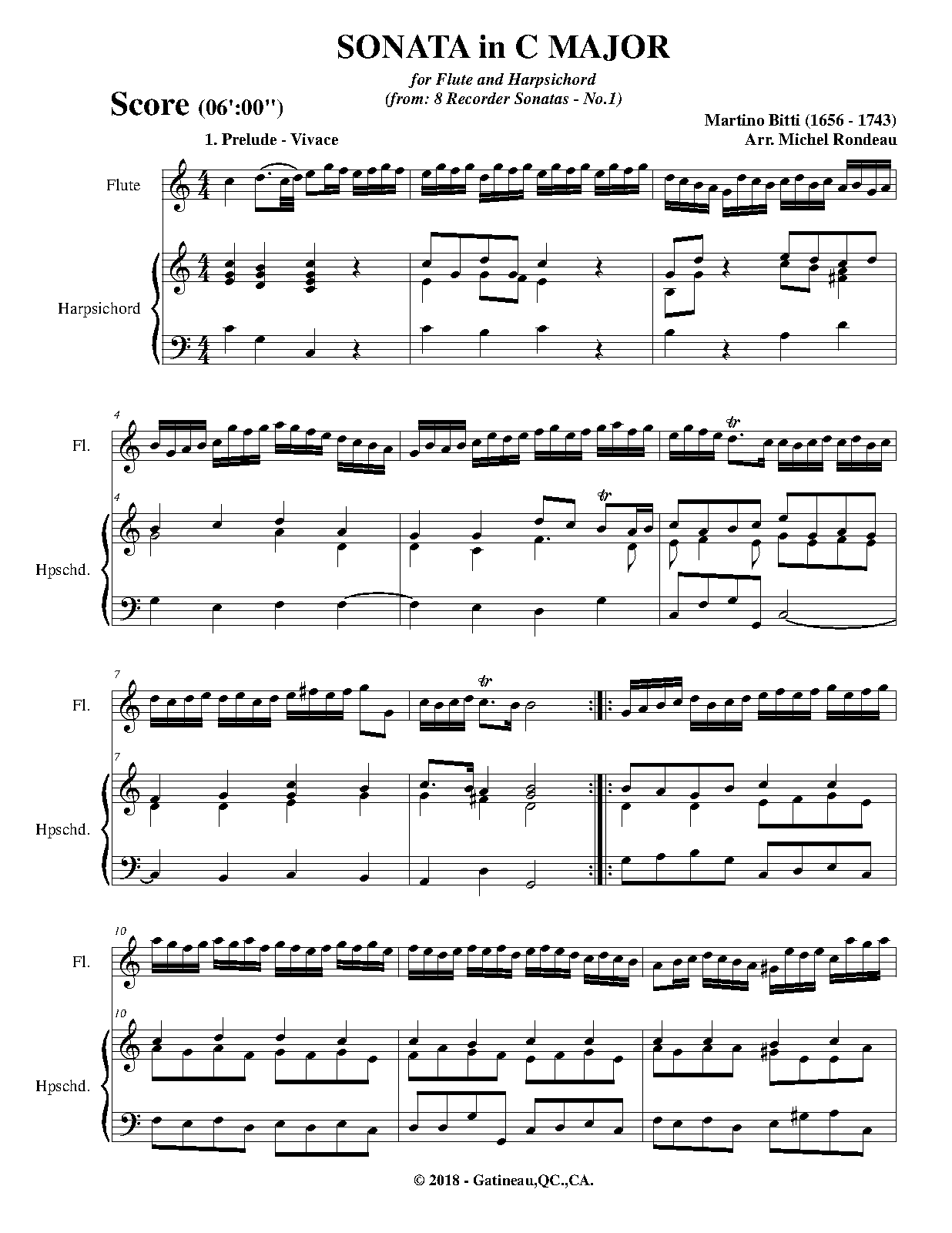 Initially published with a misprint on the title page that implied they were trio sonatas (or lack of punctuation after "due"), there was a quick reprint in 1712, with the title changed to Solo’s for a Flute, with a through Bass for the Harpsicord or Bass Violin