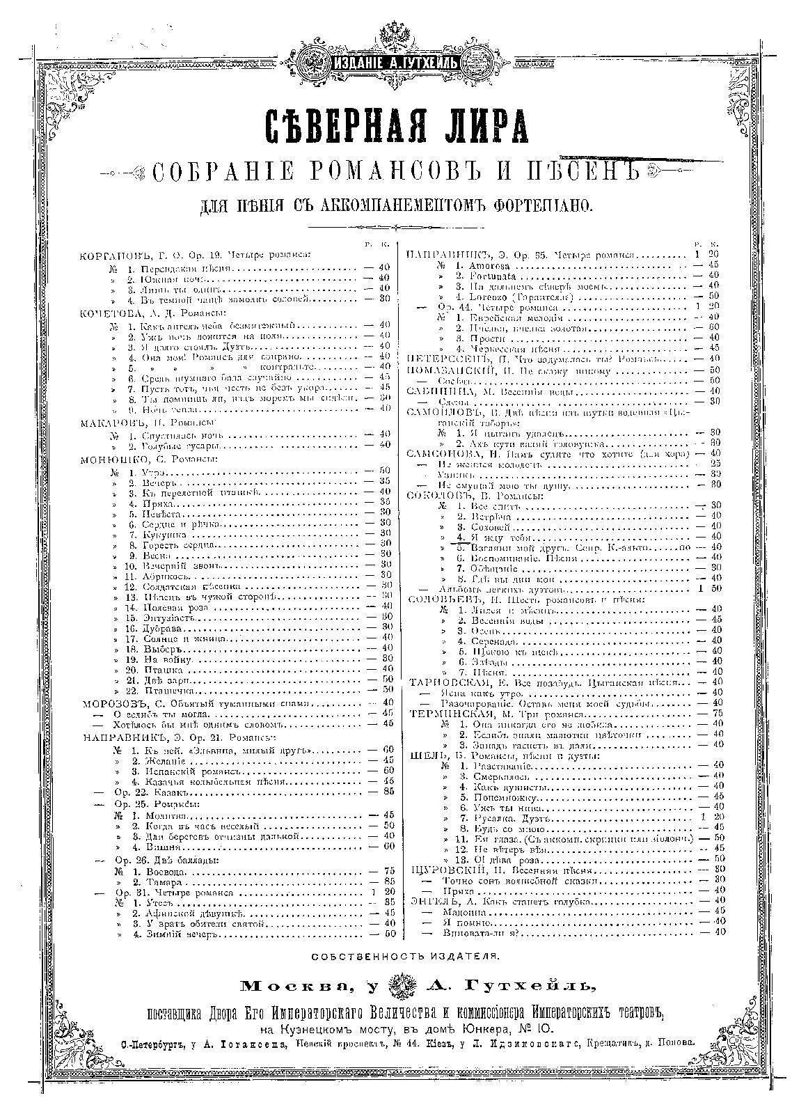 | Genre Categories | Romances; For voice, piano; For voices with keyboard; |