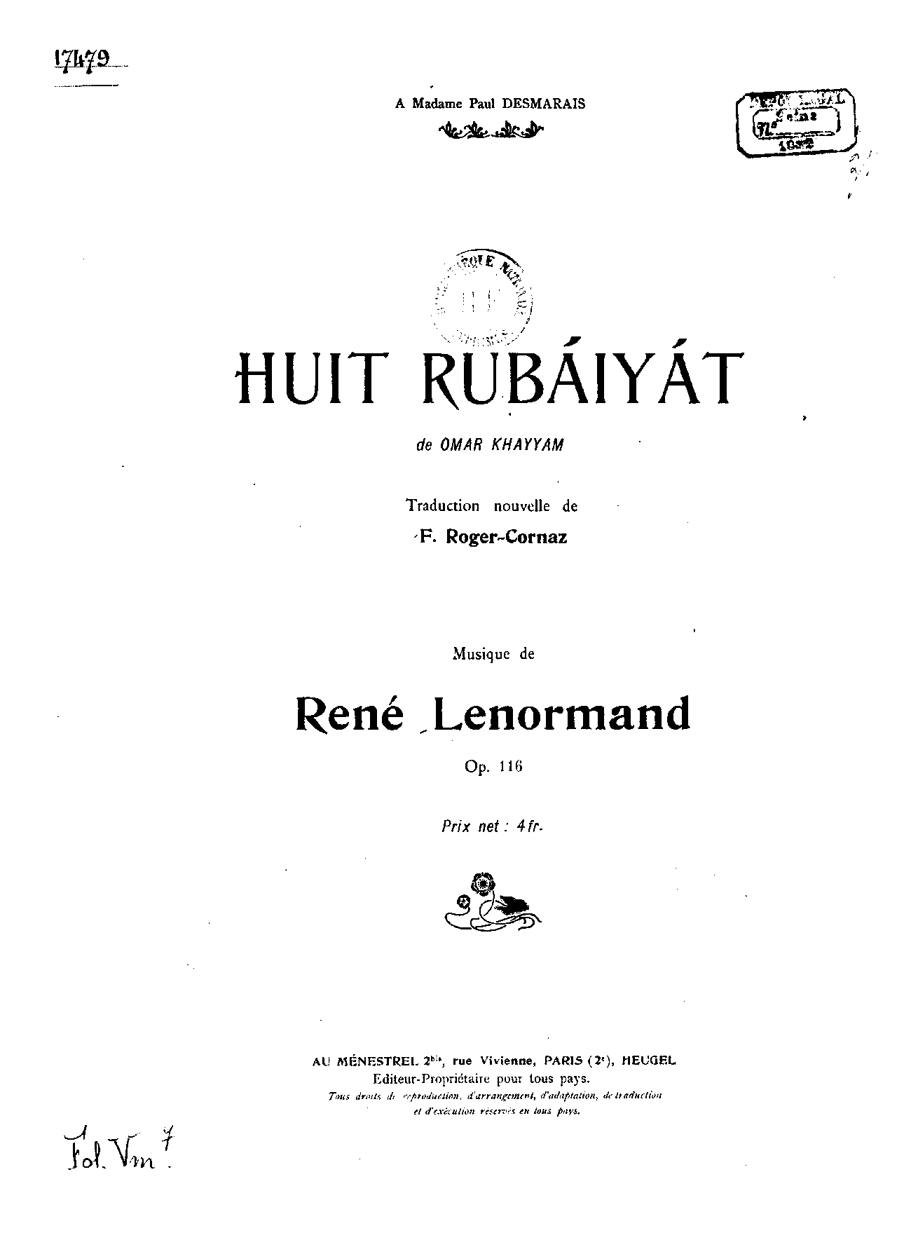 | Composer | Lenormand, René |