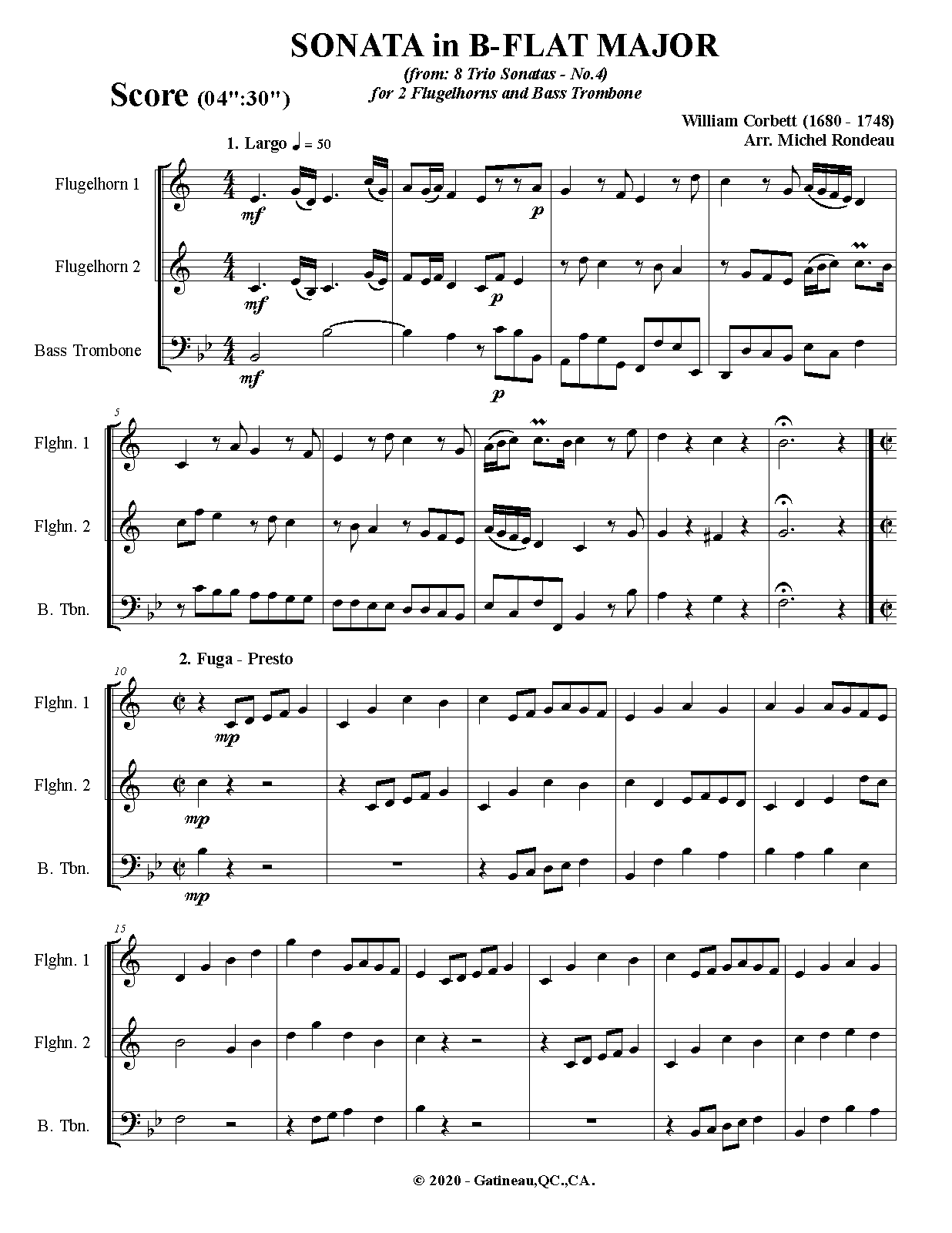 | Movements/SectionsMov'ts/Sec's | 8 sonatas - 6 by Corbett, 2 by Gottfried Finger |