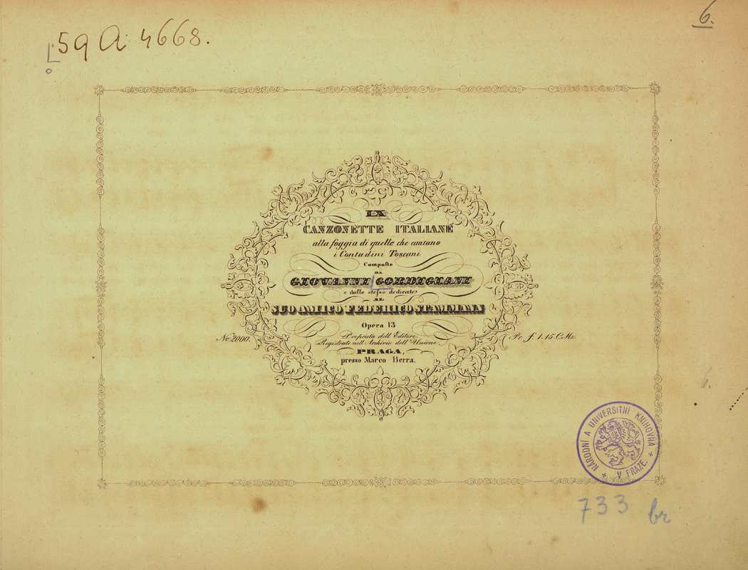 | Alternative. Title | IX Canzonette italiane alla foggia di quelle che cantano i contadini toscani |