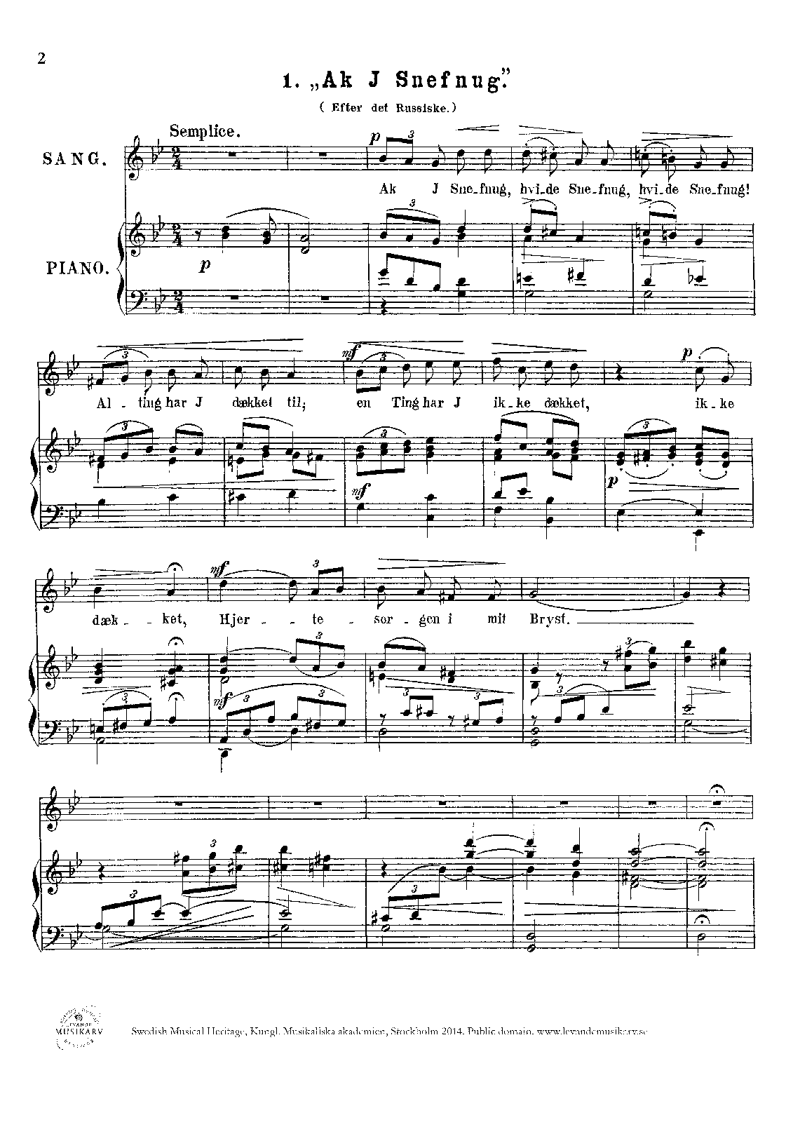 - Ak I Snefnug (after the Russian). Semplice (G minor)
