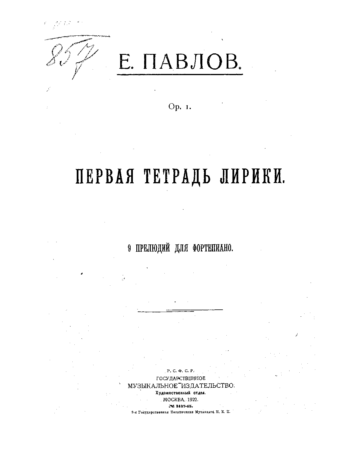 Первая Тетрадь Лирики. 9 Прелюдий для фортепиано