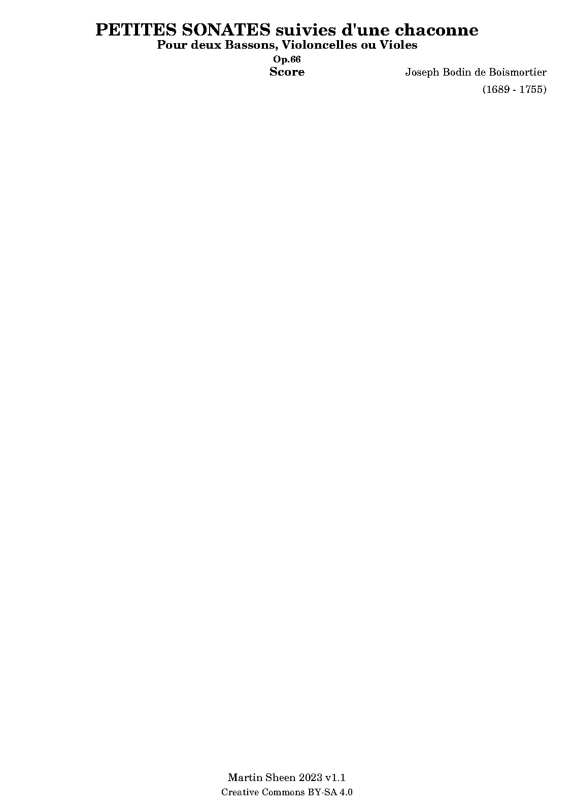 | Alternative. Title | Petites Sonates suivies d'une Chaconne pour deux Bassons, Violonceles ou Violes |