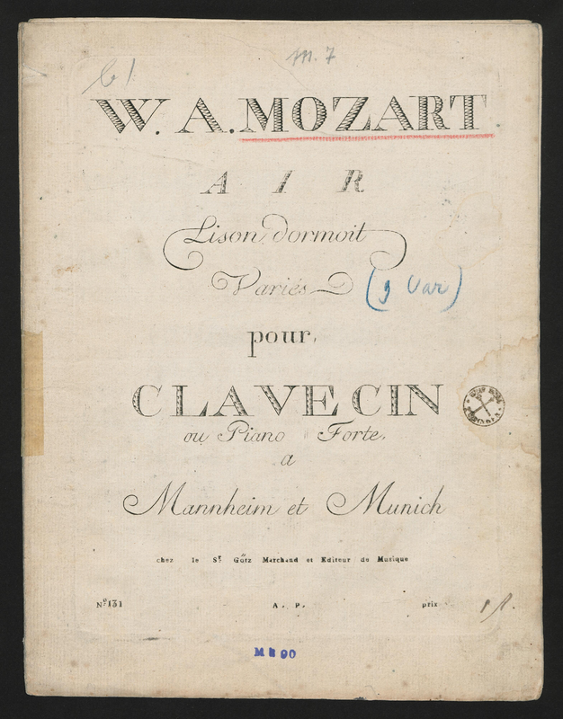 Name Aliases Neun Variationen für Clavier über »Lison dormait«  Neun Variationen für Clavier über "Lison dormait"; Neun Variationen über ein Thema von N. Dezède "Lison dormait"; Neun Variationen für Klavier über ein Thema von Nicolas Dezède "Lison dormait”; KV 264; KV 315d; K 264; K 315d