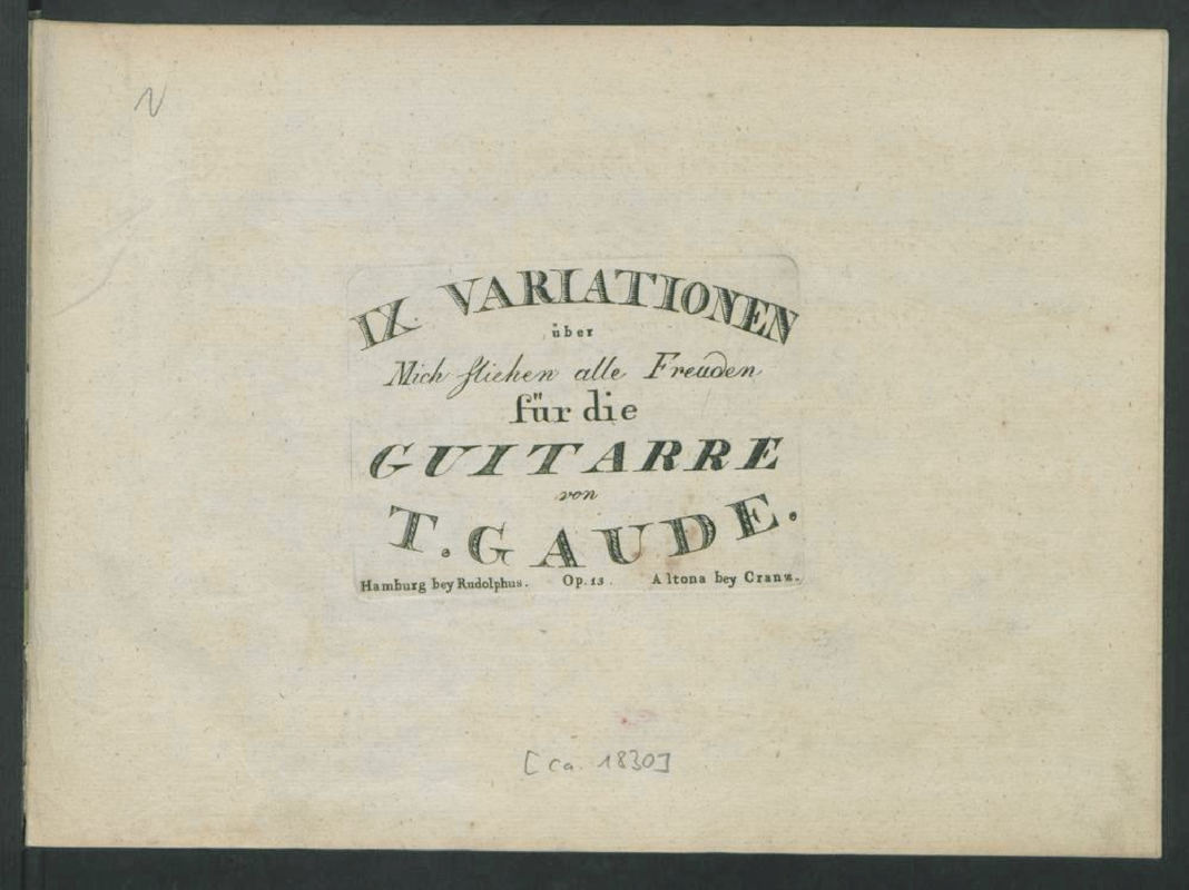 | Work Title | 9 Variationen über Mich fliehen alle Freuden für die Guitarre |