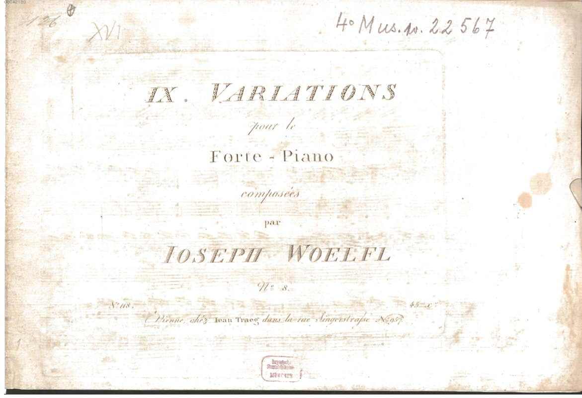 | Alternative. Title | IX Variations pour le Forte - Piano composées par Joseph Woelfl |