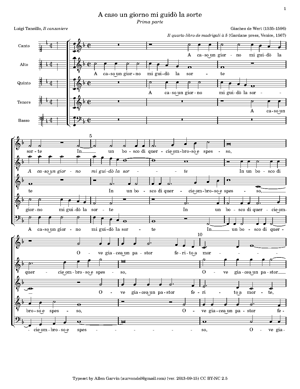 | First Publication | 1567 in Madrigali a 5 voci, Libro 4 |