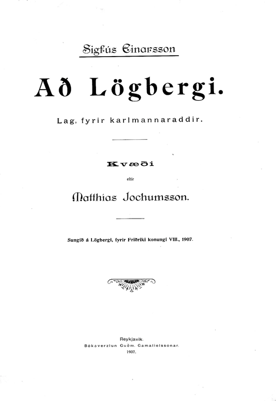 | Extra Information | Sungið á Lögbergi, fyrir Friðriki konungi VIII, 1907 |