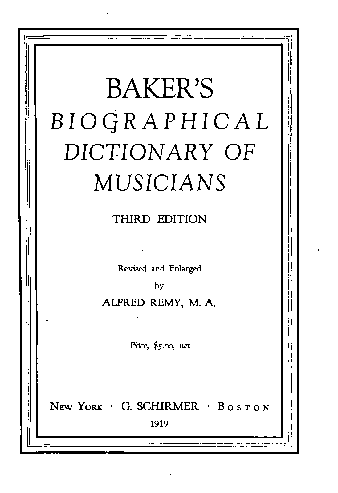 | Extra Information | Beginning with the third edition (1919) the book was renamed Baker's Biographical Dictionary of Musicians. |
