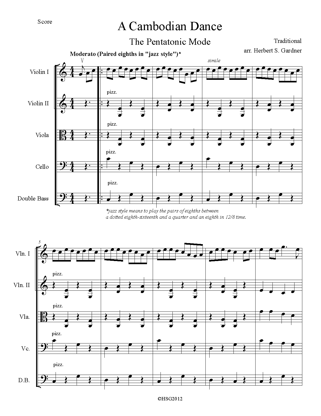 Work transcribed by composer at youth performance at Siem Reap, 2013.
