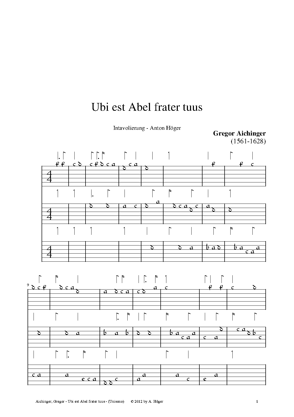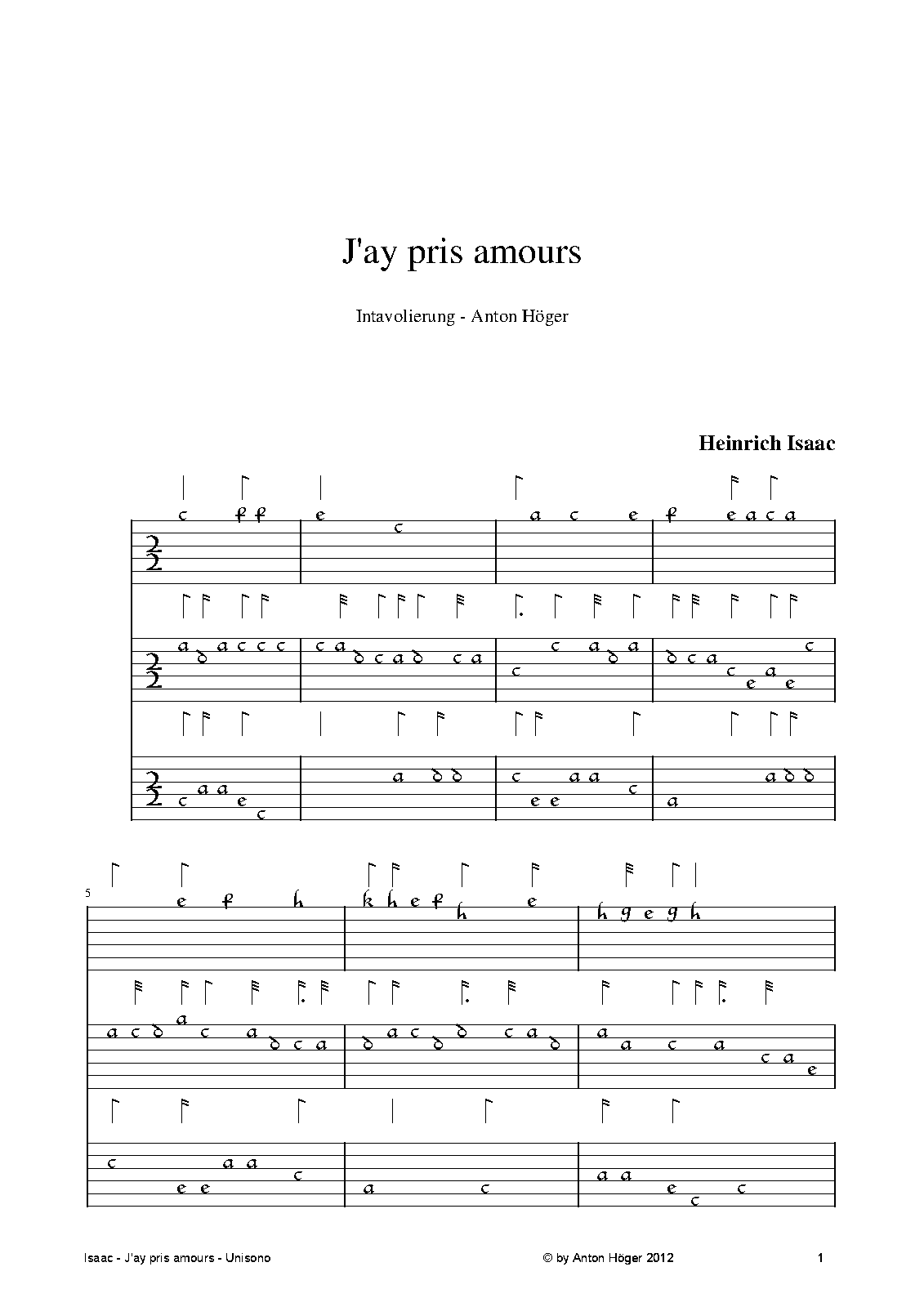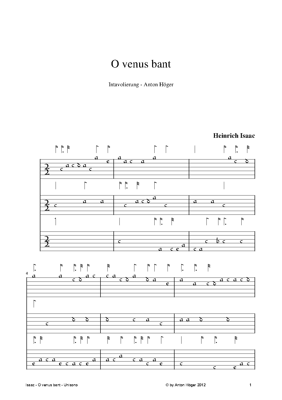 These "single-line" intabulations are intended not only for training purposes for students (rhythm, listening sessions, interaction) but can be even small Encores in concerts. -------------- Diese "einstimmigen" Intavolierungen sind nicht nur für Übungszwecke für Schüler gedacht, (Rhythmus, Hörtraining, Zusammenspiel) sondern können auch kleine Zugaben bei Konzerten sein.