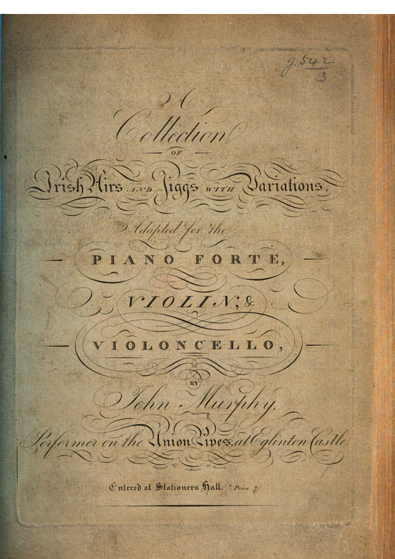 | Alternative. Title | A Collection of Irish Airs and Jiggs with Variations, adapted for the Piano Forte, Violin, & Violoncello, by John Murphy, performer on the Union Pipes, at Eglinton Castle |
