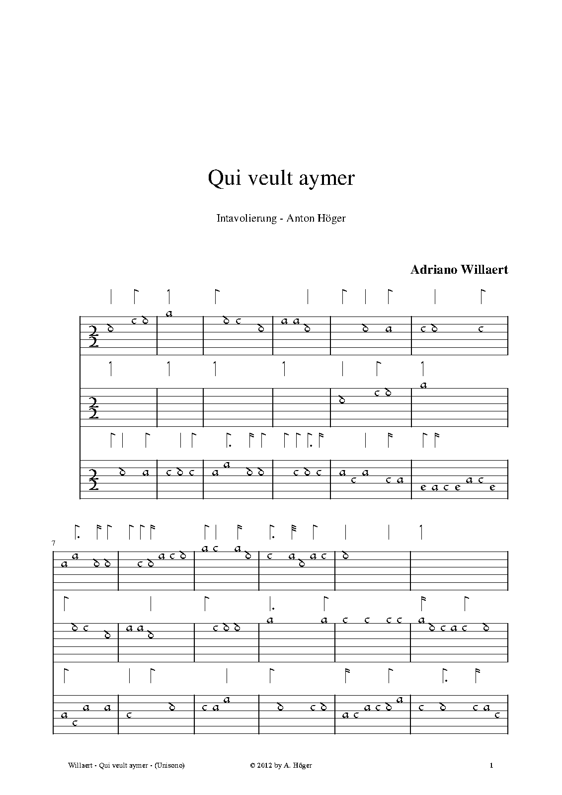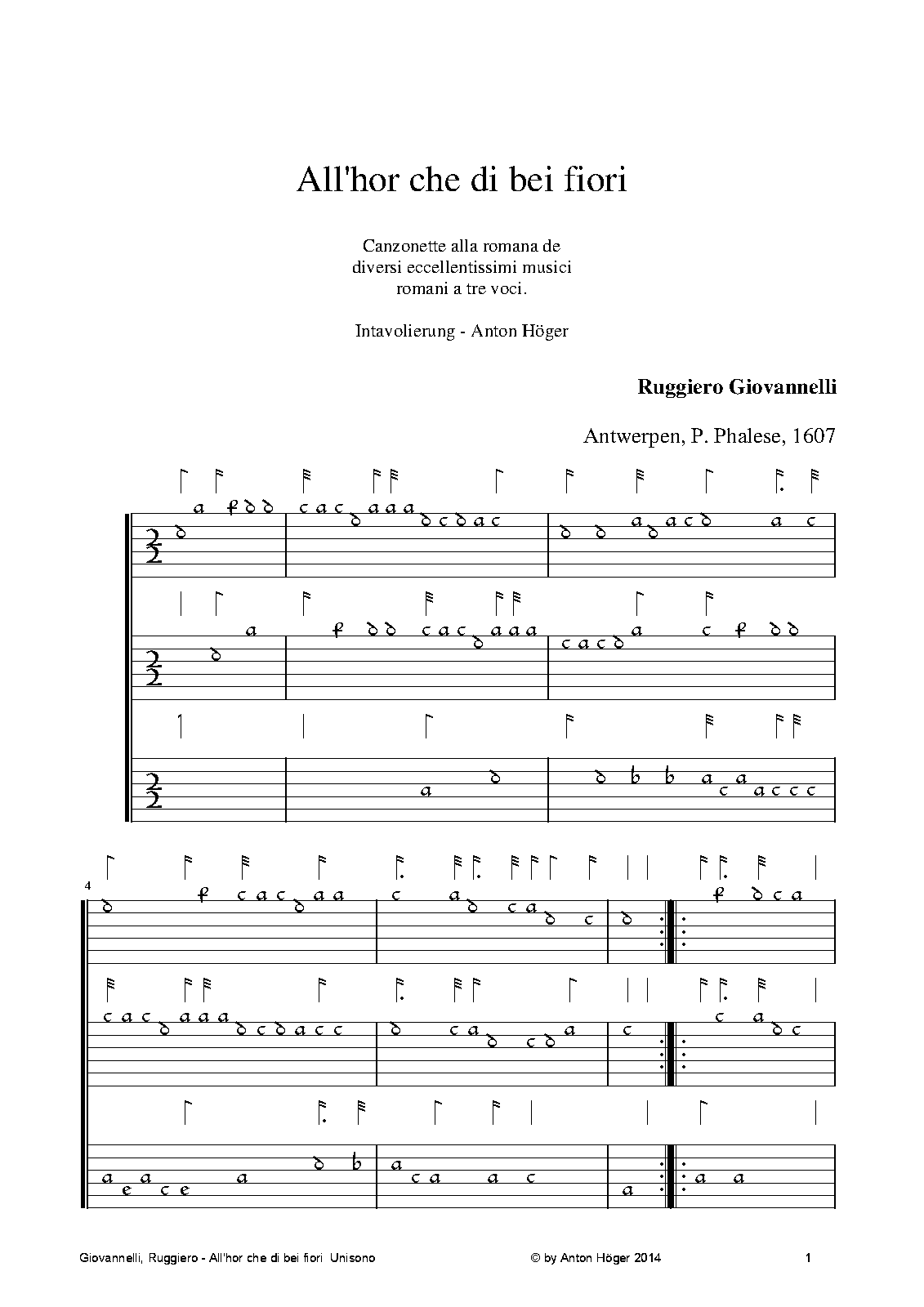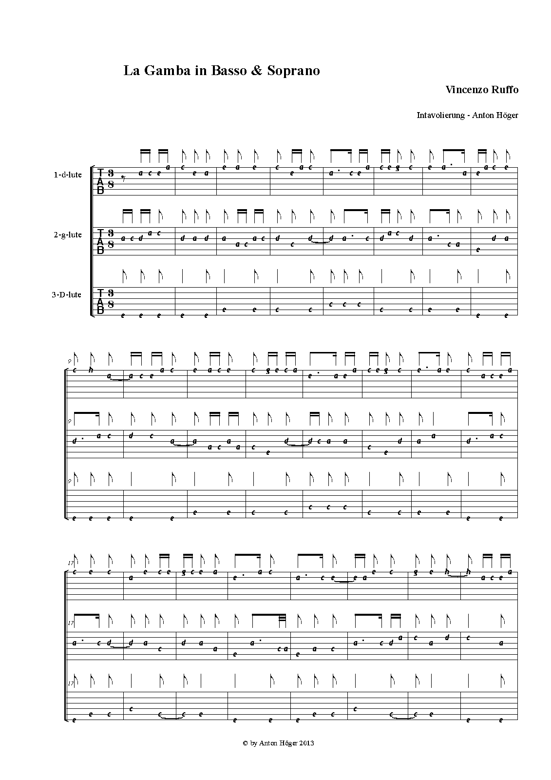 ⇒ 7 more: Complete score (high Version) • Lute 1 (tablature) • Lute 2 (tablature) • Lute 3 (tablature) • Lute 1 (tablature) (high Version) • Lute 2 (tablature) (high Version) • Lute 3 (tablature) (high Version)