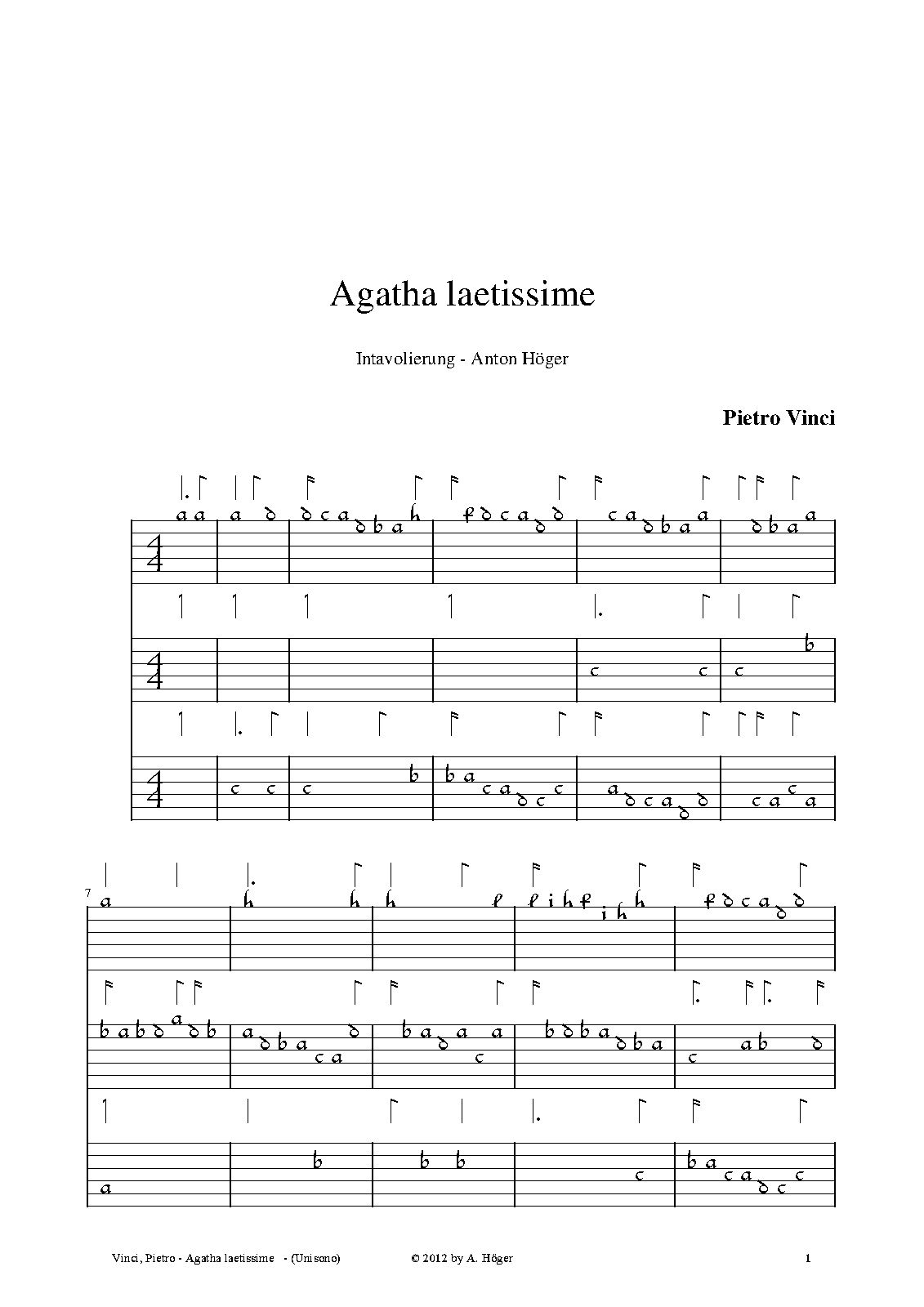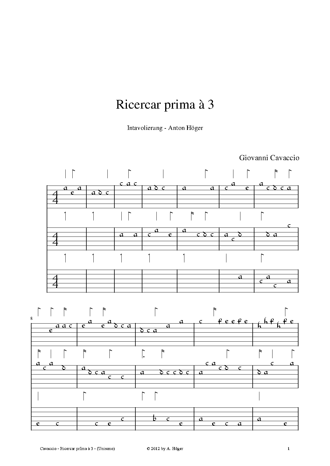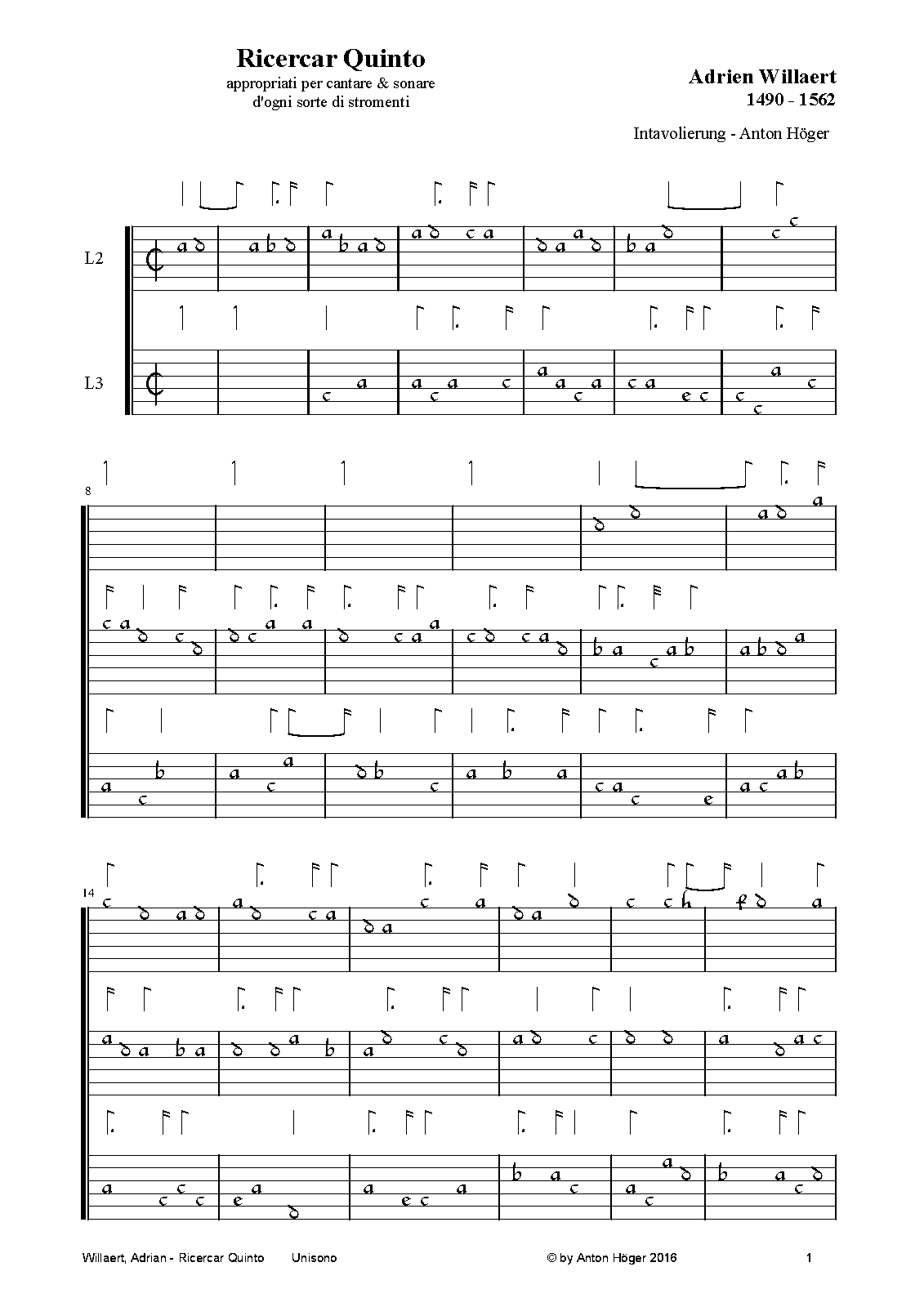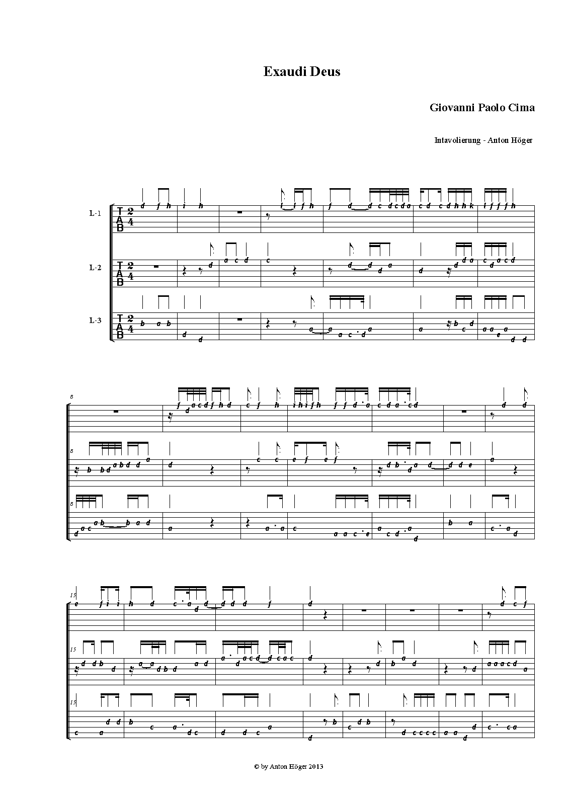 ⇒ 7 more: Complete score (high Version) • Lute 1 (tablature) • Lute 2 (tablature) • Lute 3 (tablature) • Lute 1 (tablature) (high Version) • Lute 2 (tablature) (high Version) • Lute 3 (tablature) (high Version)