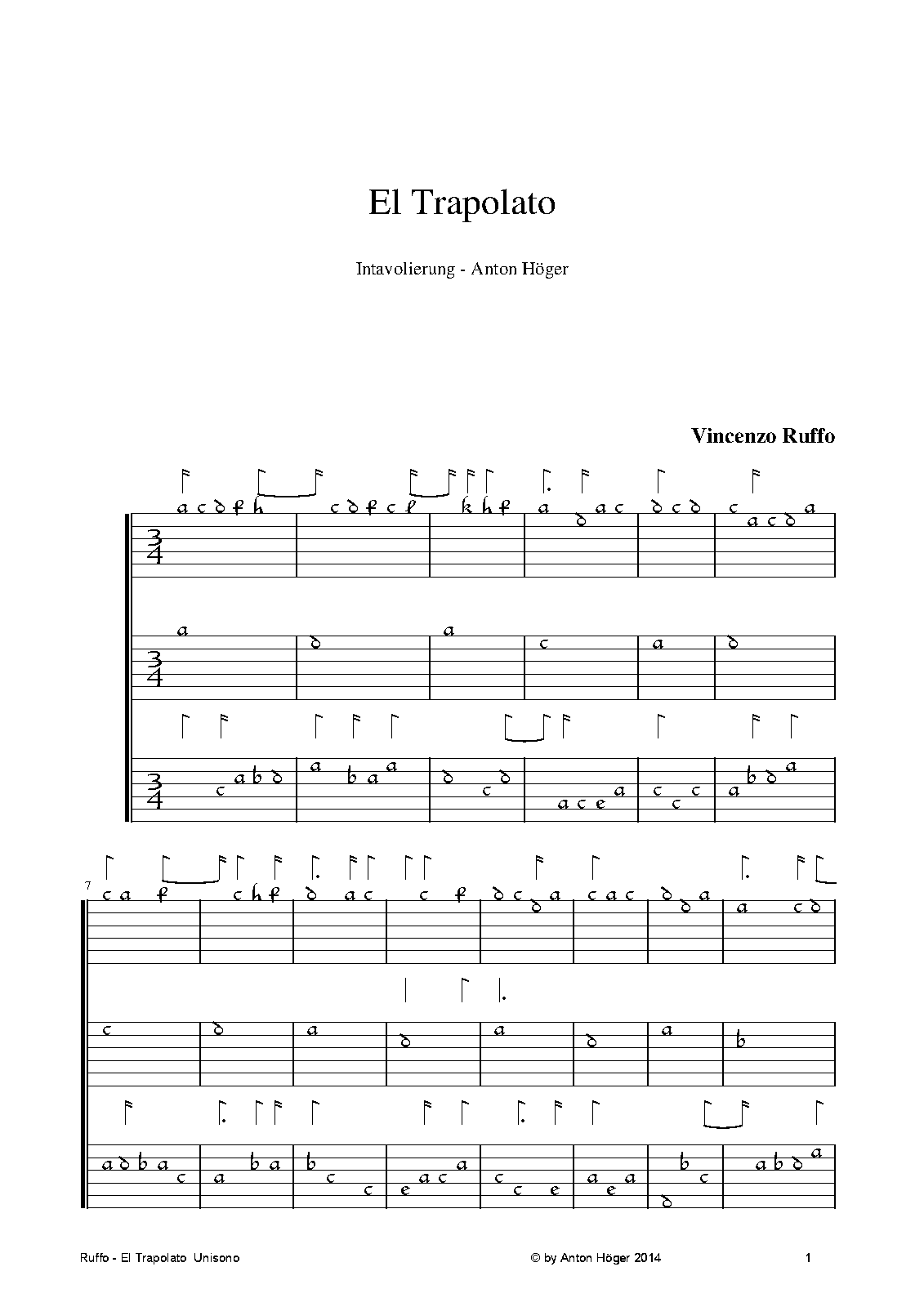 These "single-line" Intabulations are intended not only for training purposes for students (rhythm, listening sessions, interaction) but can be even small Encores in concerts. -------------- Diese "einstimmigen" Intavolierungen sind nicht nur für Übungszwecke für Schüler gedacht, (Rhythmus, Hörtraining, Zusammenspiel) sondern können auch kleine Zugaben bei Konzerten sein.