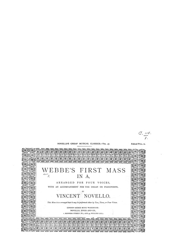 May be performed by 2, 3 or 4 voices, with organ or piano accompaniment. Novello's Cheap Musical Classics, Vols.47-52.