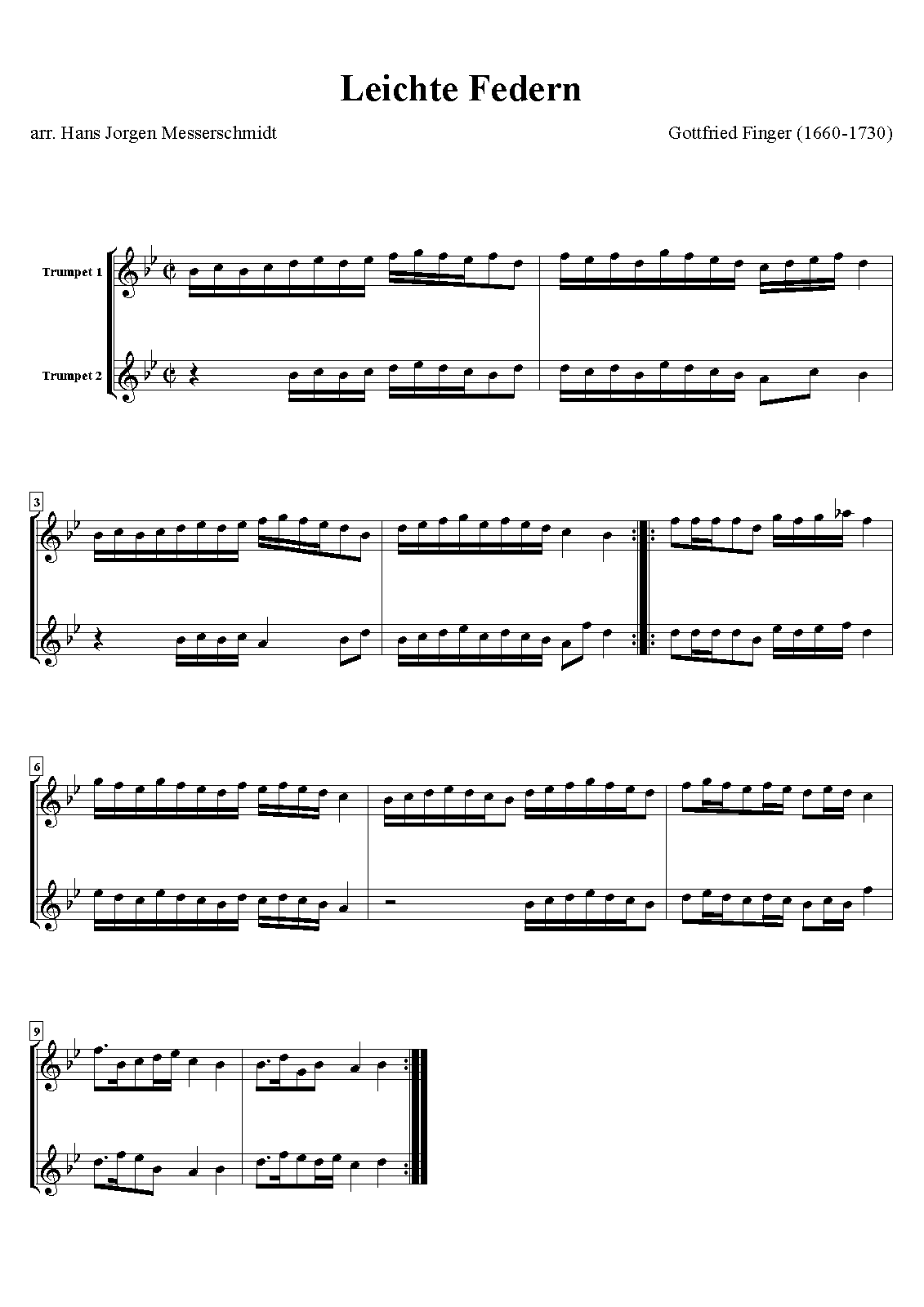 | Instrumentation | Recorder solo ; 2 recorders ; 2 violins ; recorder (or violin) and continuo ; SSA instruments (i.e. 2 violins, viola) and continuo; or rather, 2 treble instruments, viola, continuo |