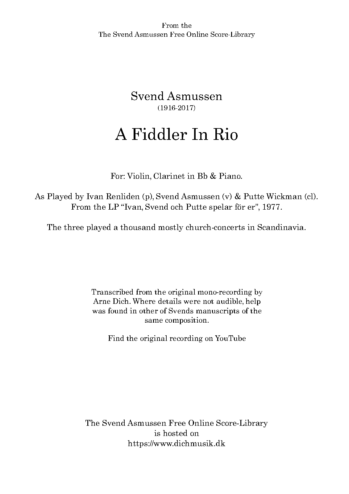 | Extra Information | Transcribed from LP: "Ivan, Svend & Putte spelar för er", 1977 |
