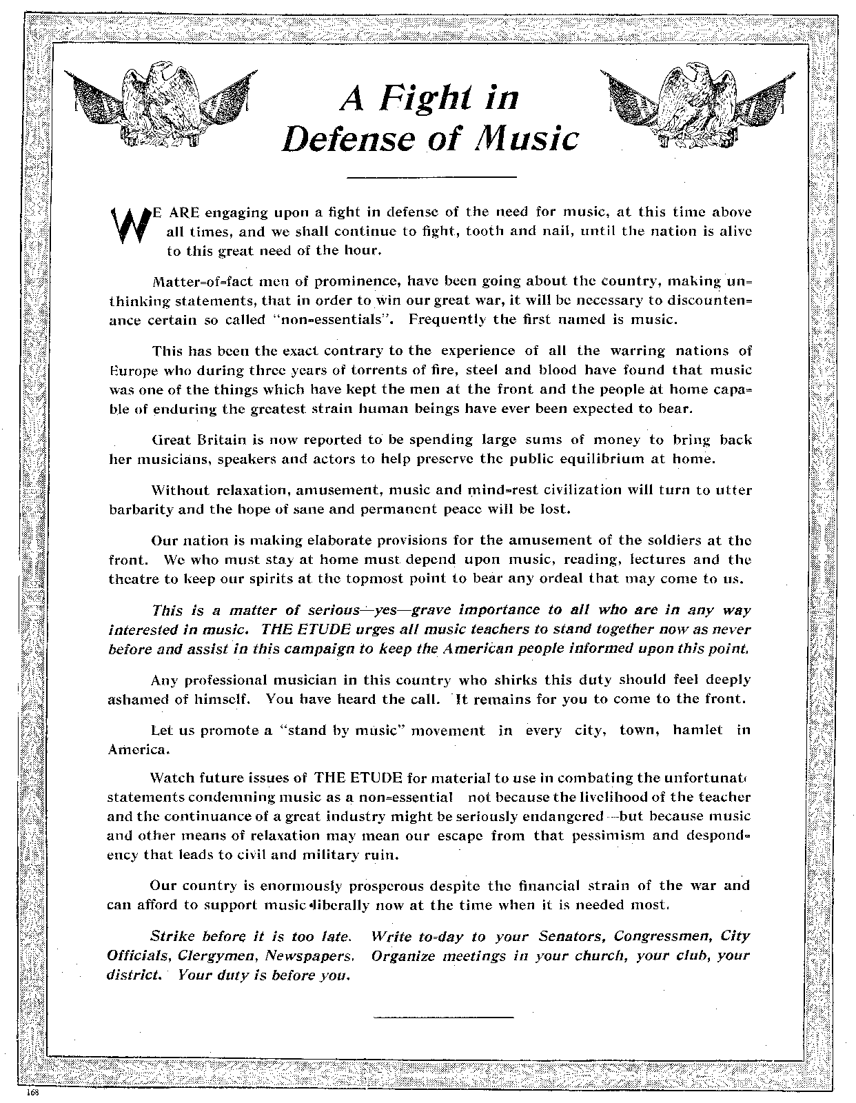 The Etude Magazine, March 1918. Philadelphia: Theodore Presser Co.