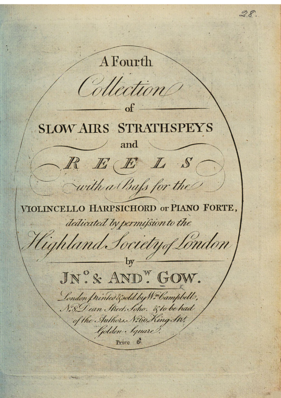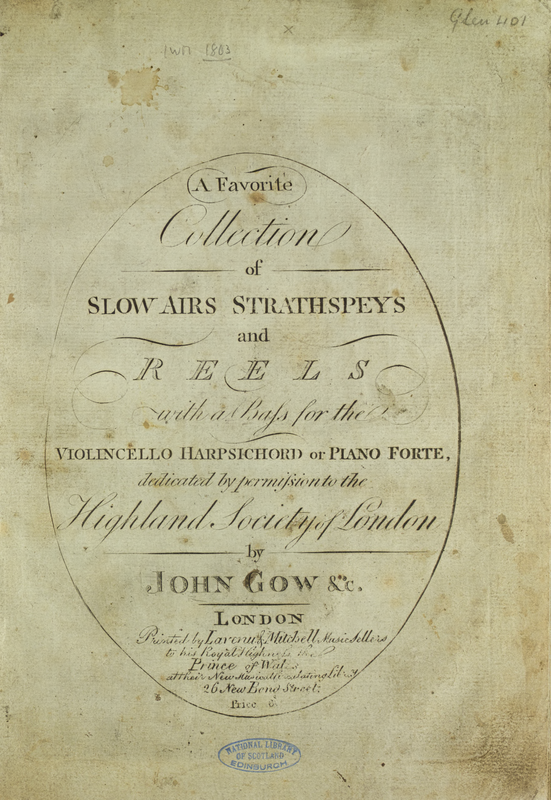 A Favorite Collection of Slow Airs, Strathspeys and Reels with a Bass for the Violincello, Harpsichord or Piano Forte ... by John Gow &c.