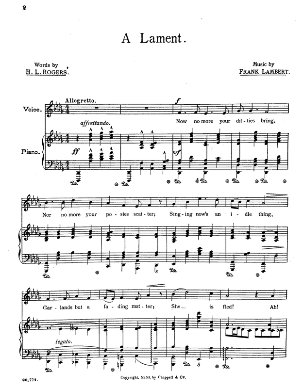 | Genre Categories | Songs; For voice, piano; For voices with keyboard; |