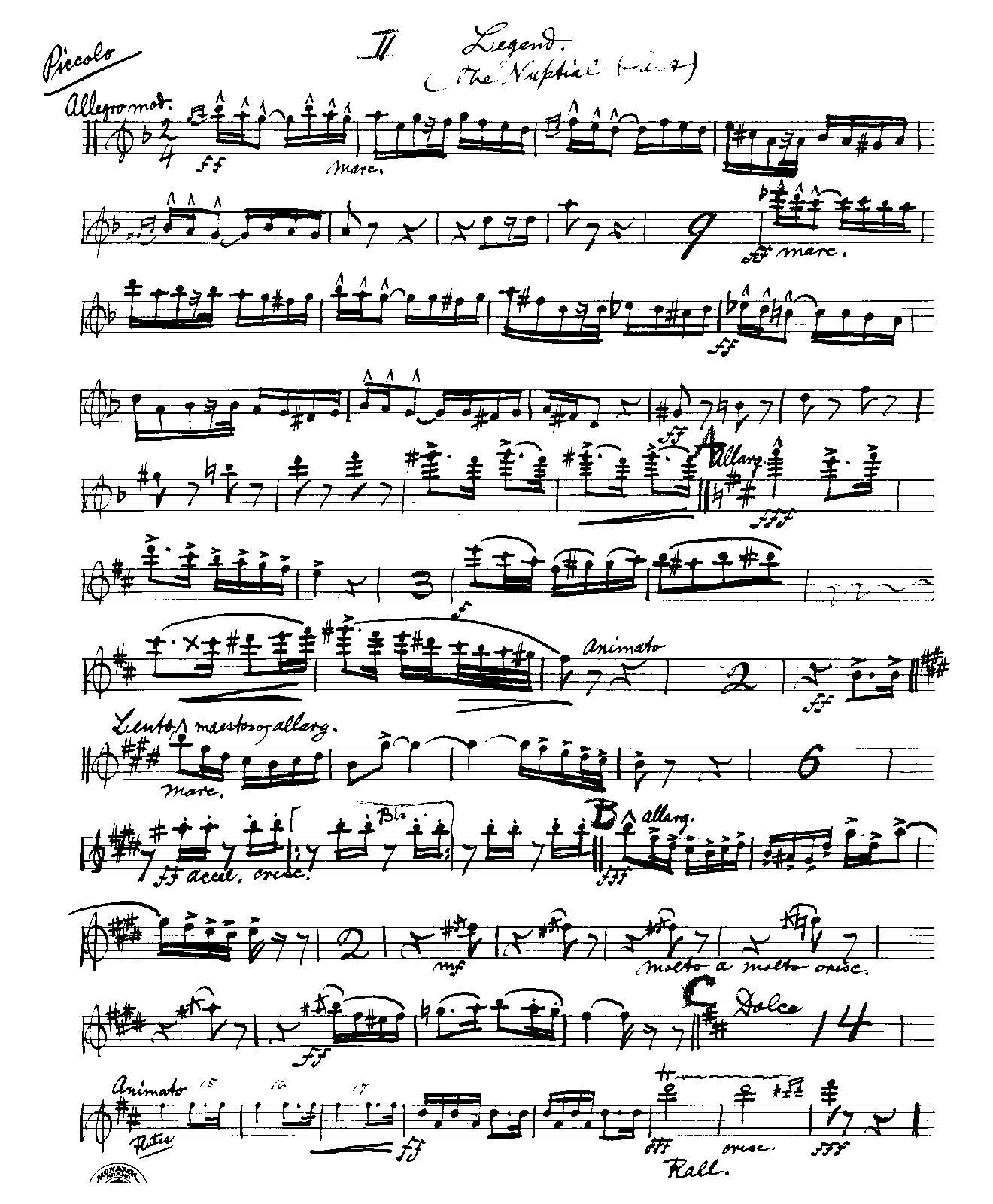 Originally conceived as two separate works: Nuptial Feast (Op.85) and A Legend (Op.86). It appears that after the first performance the composer decided to merge the two works together as opus 86.