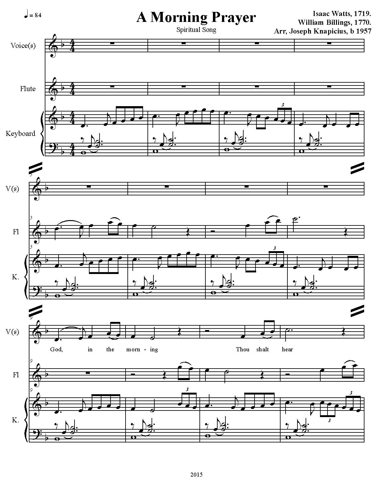 | Extra Information | Composer attributes the melody to William Billings; it could be said to be very loosely based on Billings' tune Phoebus (from The Singing Master's Assistant), but the resemblance is so slight that it ought to be considered an original work by Knapicius. |