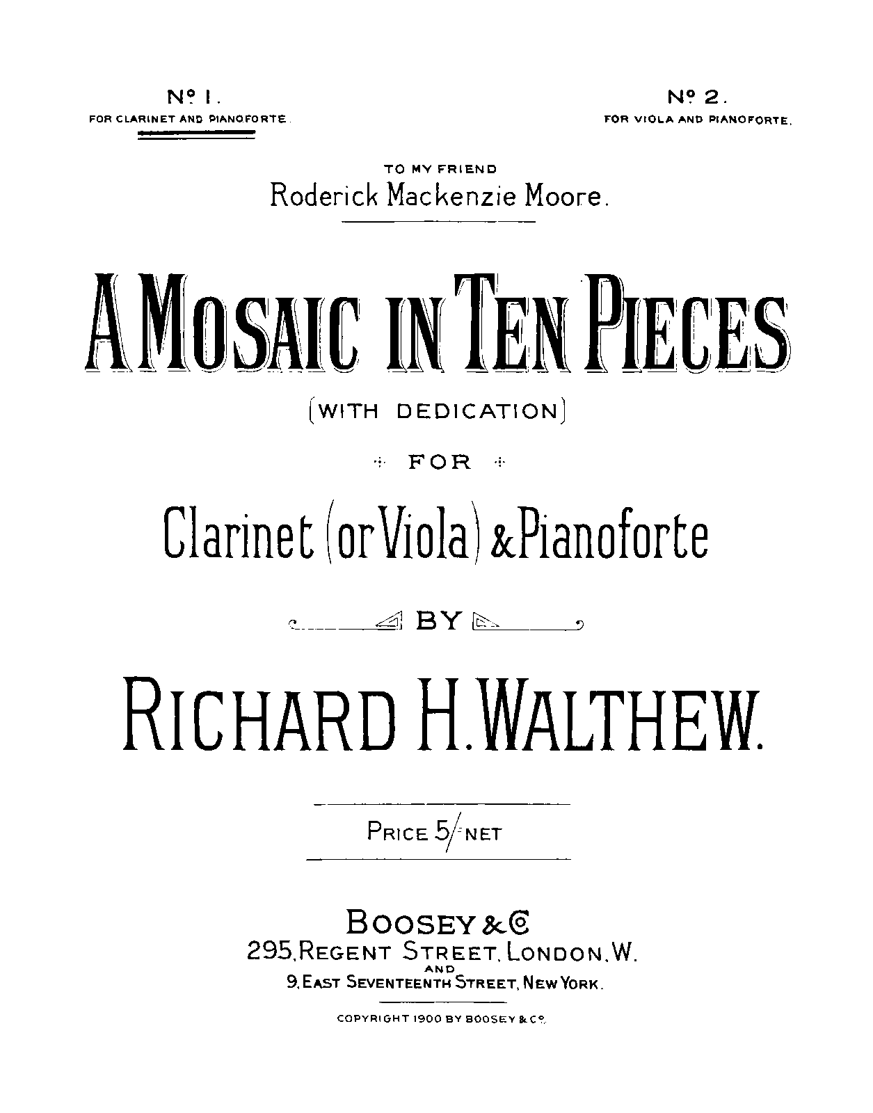 | Alternative. Title | A mosaic in ten pieces (with dedication) for clarinet (or viola) & pianoforte |