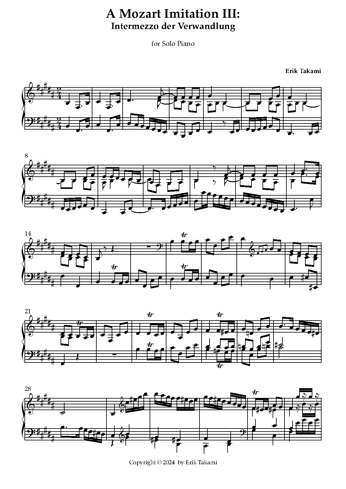 | Work Title | A Mozart Imitation III: Intermezzo der Verwandlung |