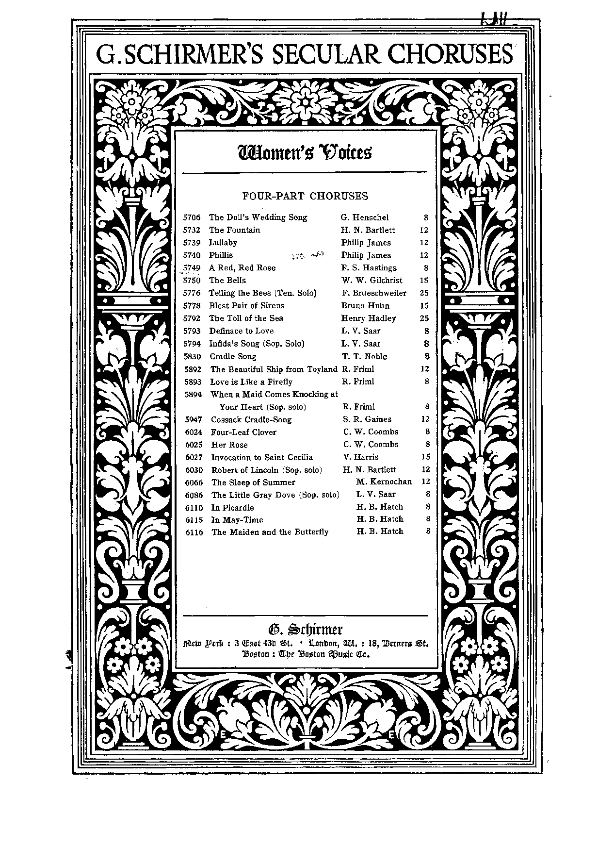 | Genre Categories | Songs; For voice, piano; For voices with keyboard; |
