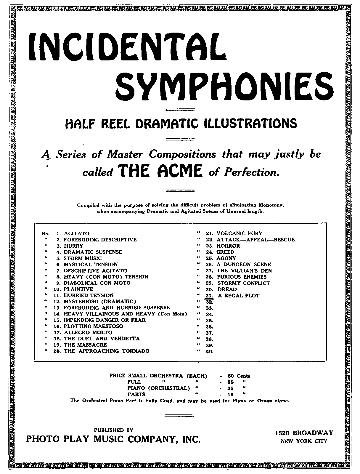 | Genre Categories | Film scores; Incidental music; Theatrical Works; |
