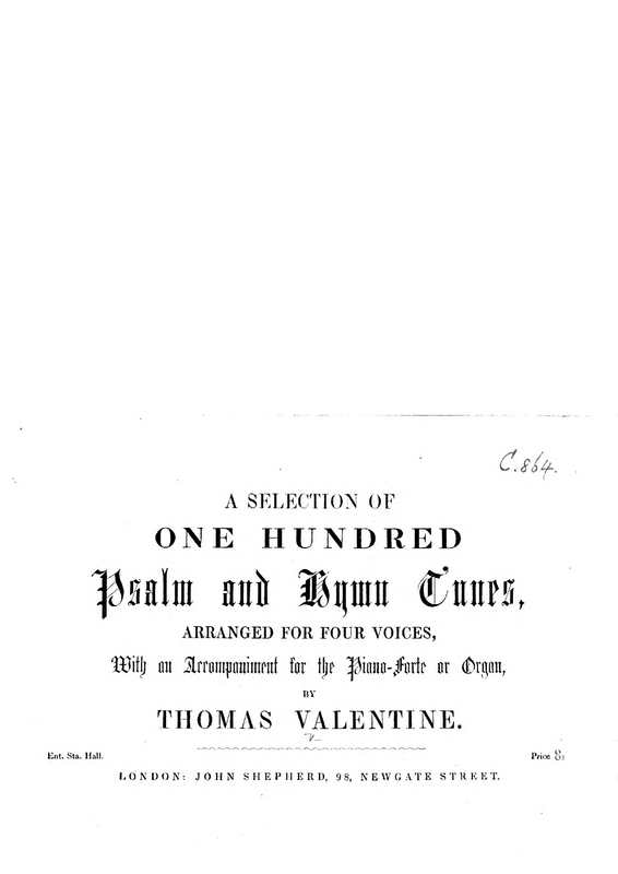 | Alternative. Title | A Selection of One Hundred Psalm and Hymn Tunes, arranged for Four Voices, with an accompaniment for the Piano-Forte or Organ Valentine's Psalmody |