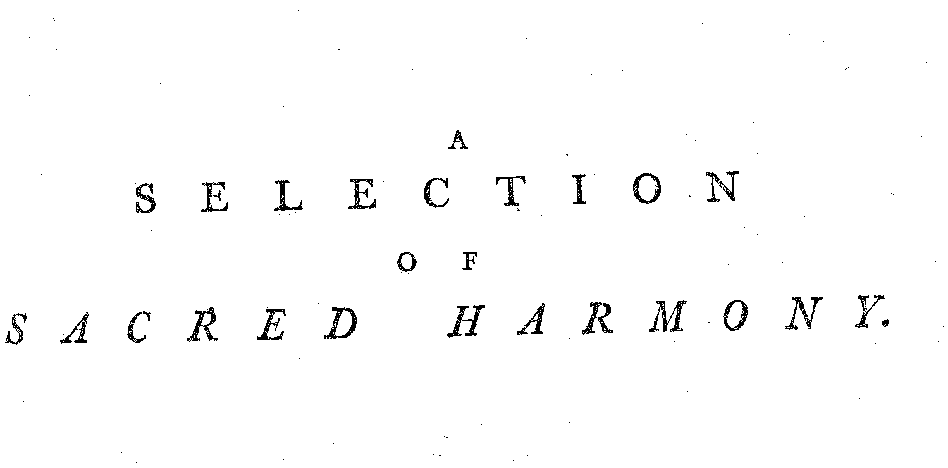 | Work Title | A Selection of Sacred Harmony, Containing Lessons explaining the Gamut, Keys, and other Characters used in Vocal Music; Also, A rich variety of Tunes approved of by the Most Eminent Teachers of Church Music in the United States. |