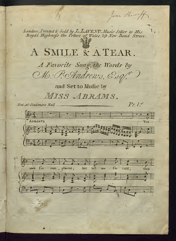 | Alternative. Title | A Smile & A Tear, a favorite song ... set to music by Miss Abrams |