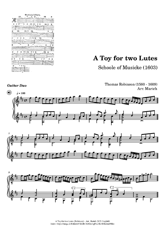 | Genre Categories | Pieces; For 2 lutes; Scores featuring the lute; |