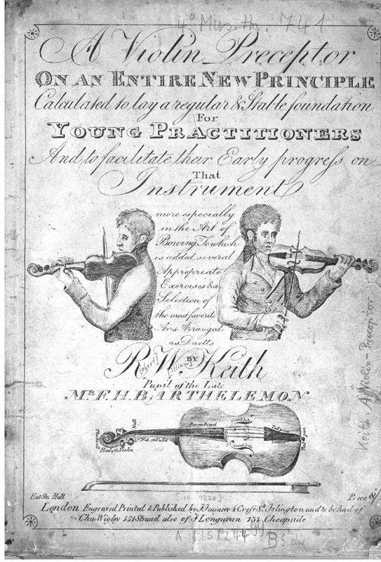 | Alternative. Title | A Violin Preceptor on an entire new principle calculated to lay a regular & stable foundation for young practitioners and to facilitate their early progress on that instrument more especially in the art of bowing. To which is added several appropriate exercises & a selection of the most favorite airs arranged as duetts by R. W. Keith pupil of the late Mr. F. H. Barthelemon |
