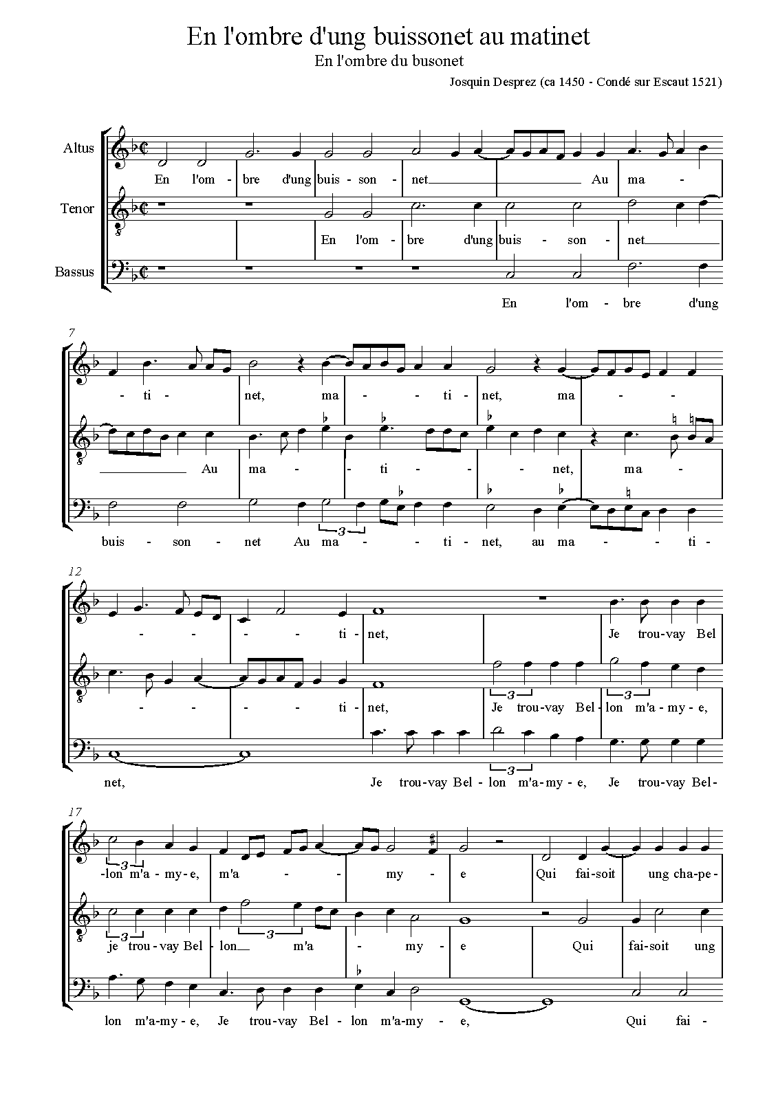 | Alternative. Title | A l'ombre d'ung buissonet au matinet |