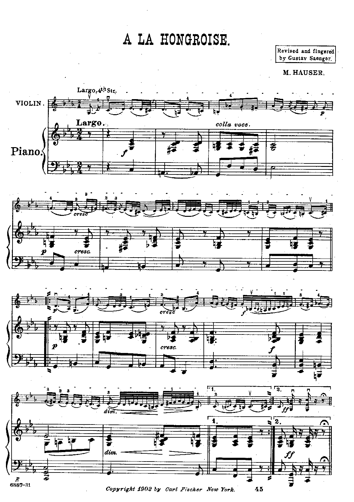 Publisher. Info. New York: Carl Fischer, 1902. Plate 6887-31.
