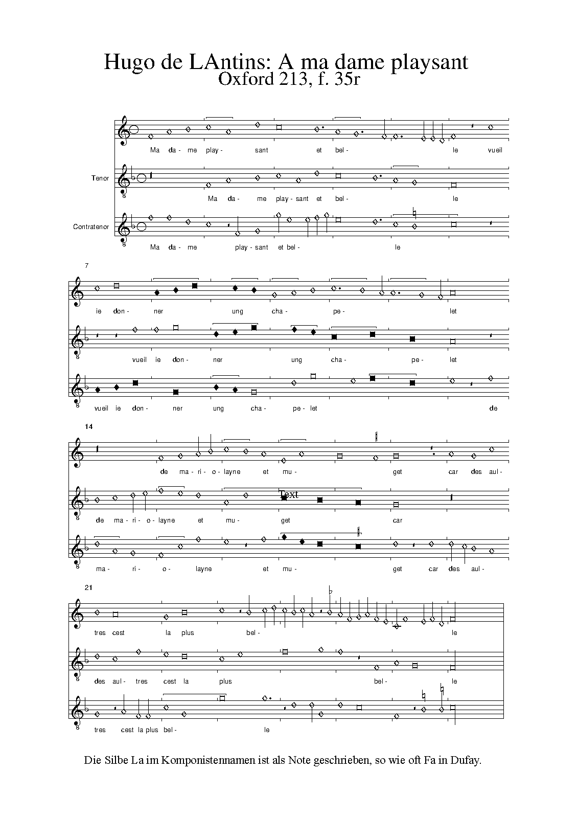 | Work Title | A ma damme playsant et belle |