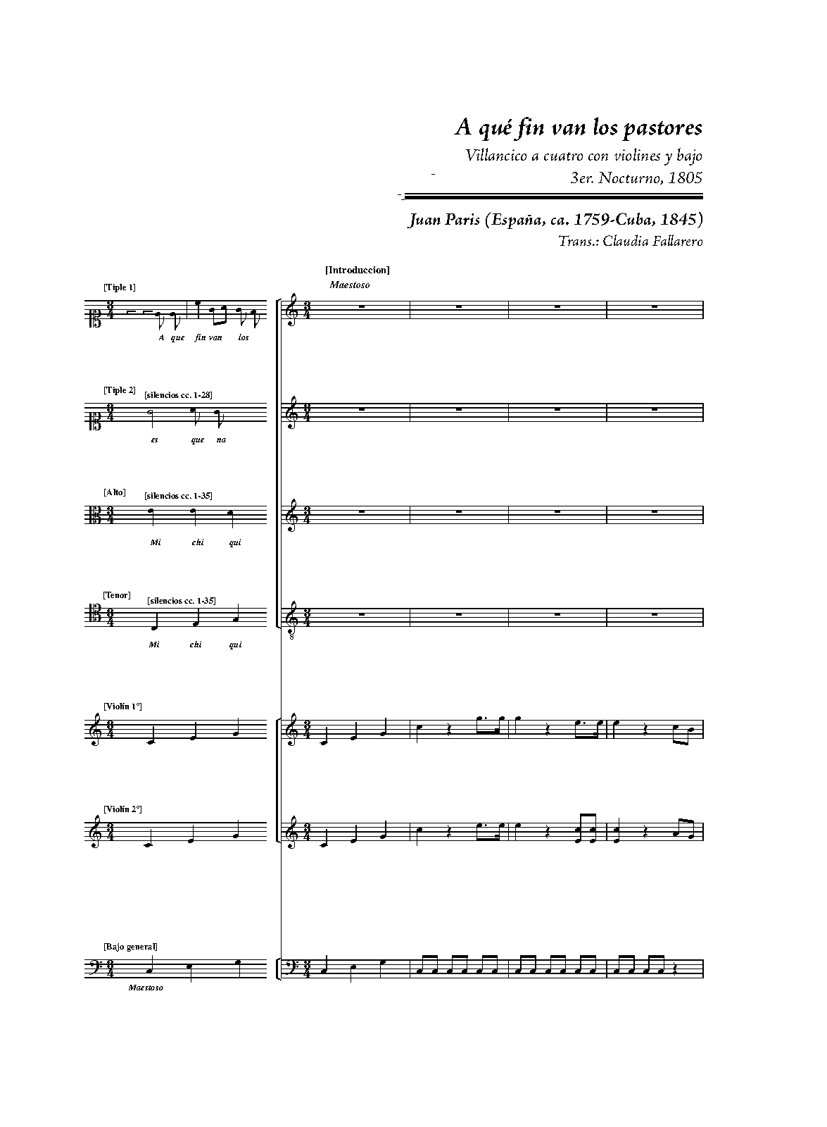 | Extra Information | Villancico a cuatro con violines y bajo 3er. Nocturno, 1805. Manuscrito localizado en SBEC, Juan Paris, Exp. 06 |
