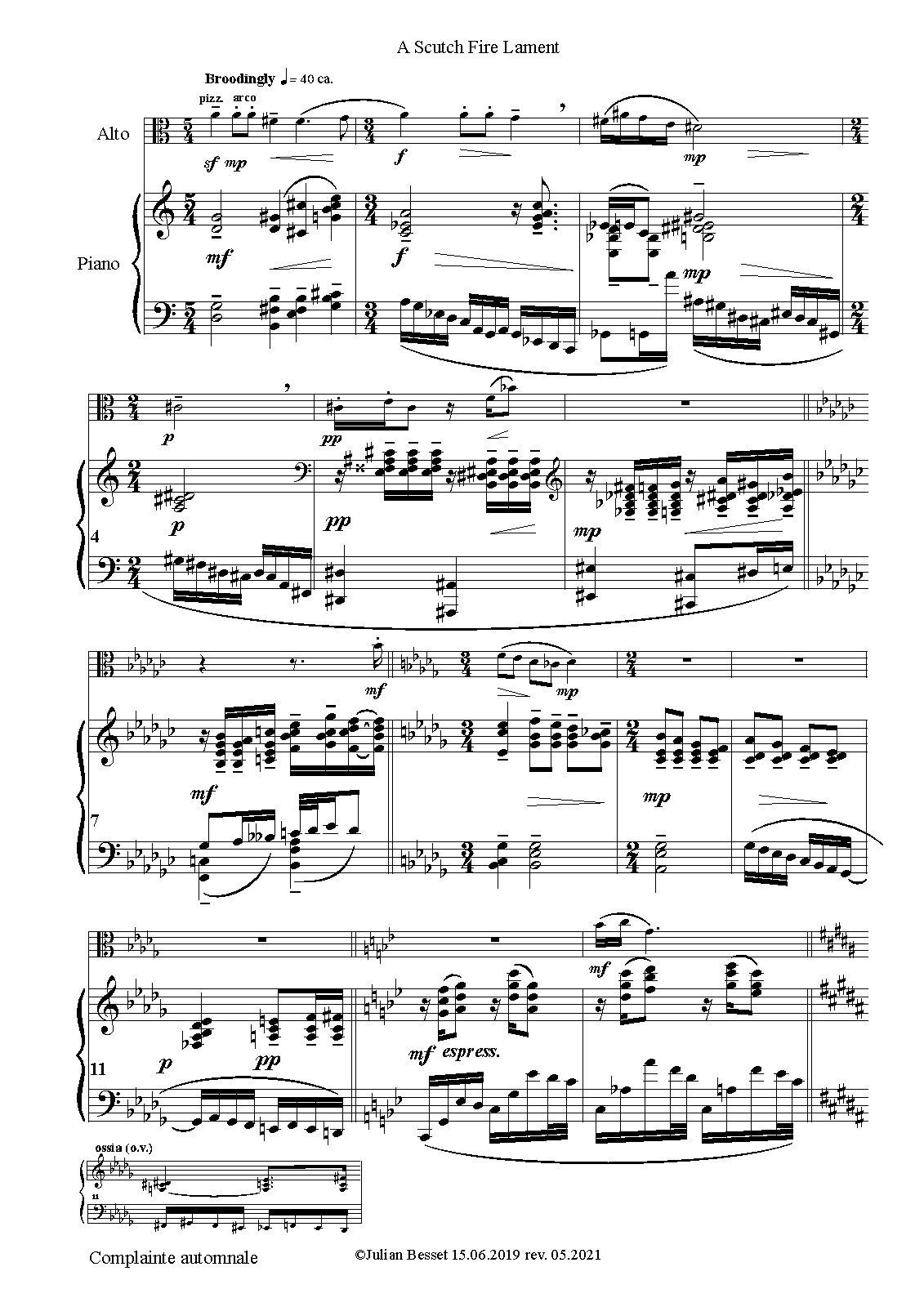 This arrangement is a prolongation of The Leaf Burners, the melodic line is this time taken up by the viola, with a few necessary adjustments, and is slightly extended. The composer has seen fit to adapt the original poem in French, under the title Complainte d'automne, in an abbreviated form.