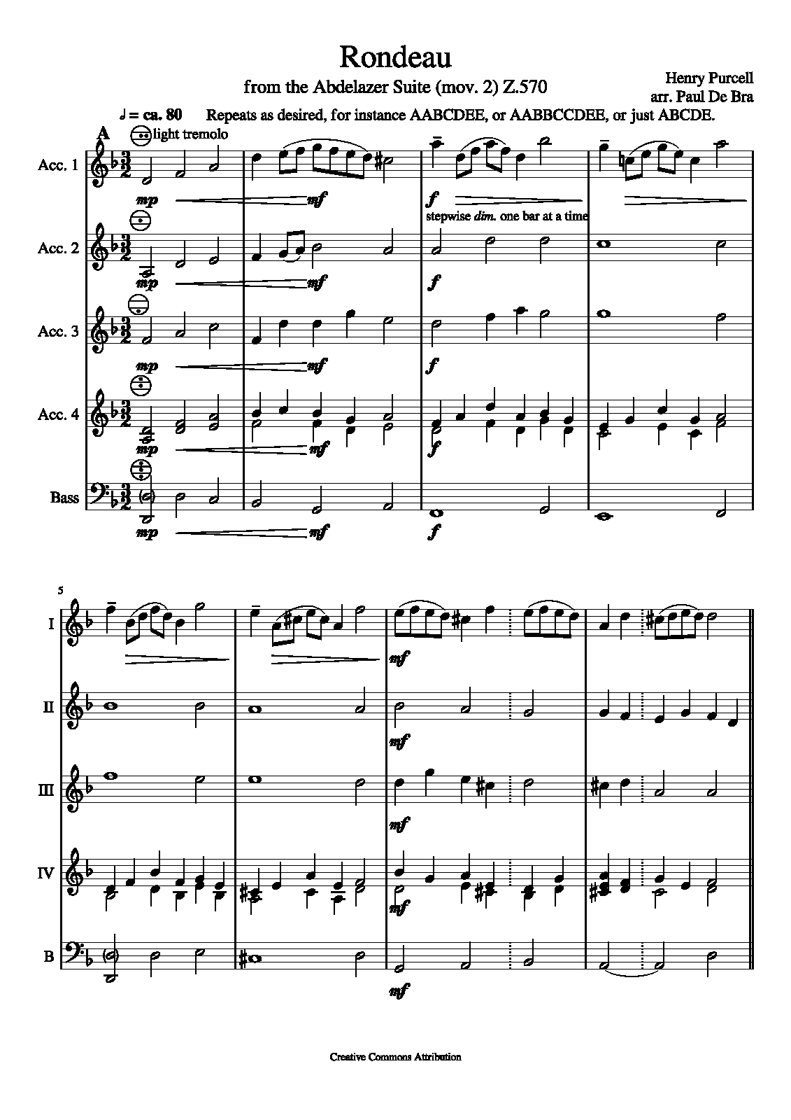 Misc. Notes Can be done with 3 accordions plus bass by omitting the 4rd voice (which is a continuo part).