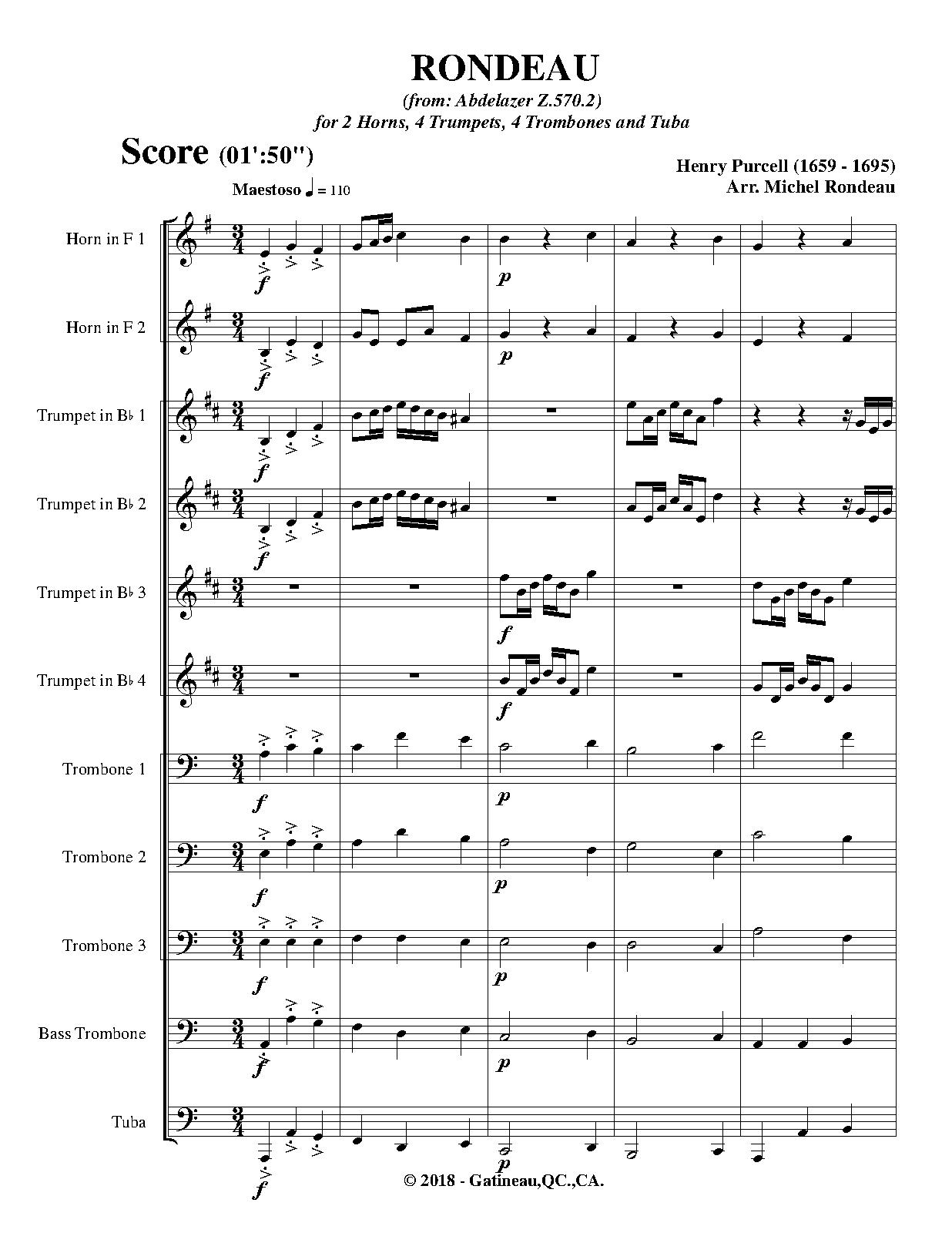 For 2 Horns, 4 Trumpets, 4 Trombones and Tuba (Rondeau)