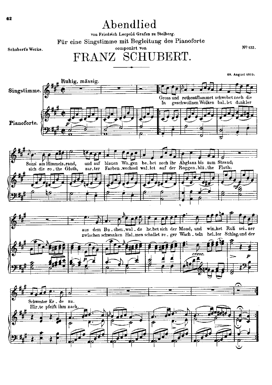 Publisher. Info. Schubert's Werke, Serie XX, Band 3. Aug. bis Ende 1815, No.133 (pp.62-63)