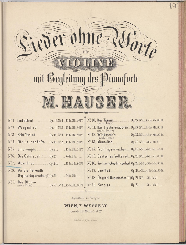 | Genre Categories | Songs; For violin, piano; Scores featuring the violin; |